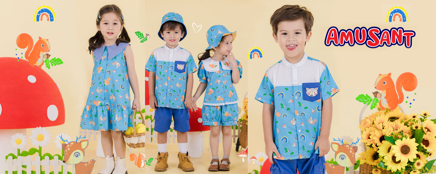 Amusant ชุดเสื้อยืดคอกลม-กางเกง เด็กเล็ก 6เดือน-8ขวบ