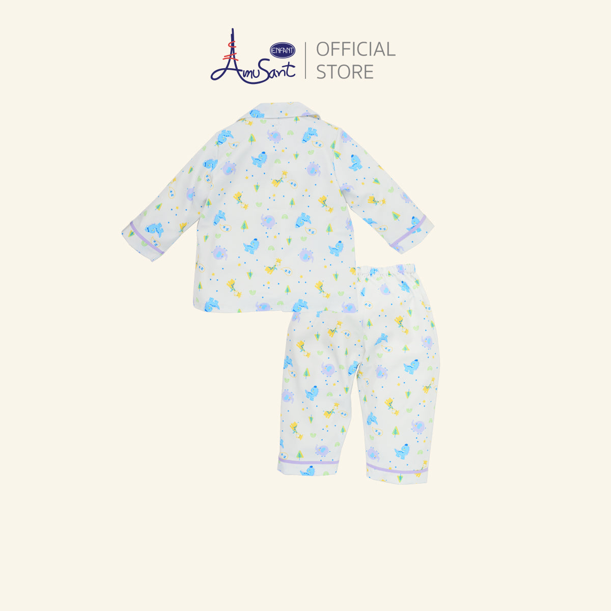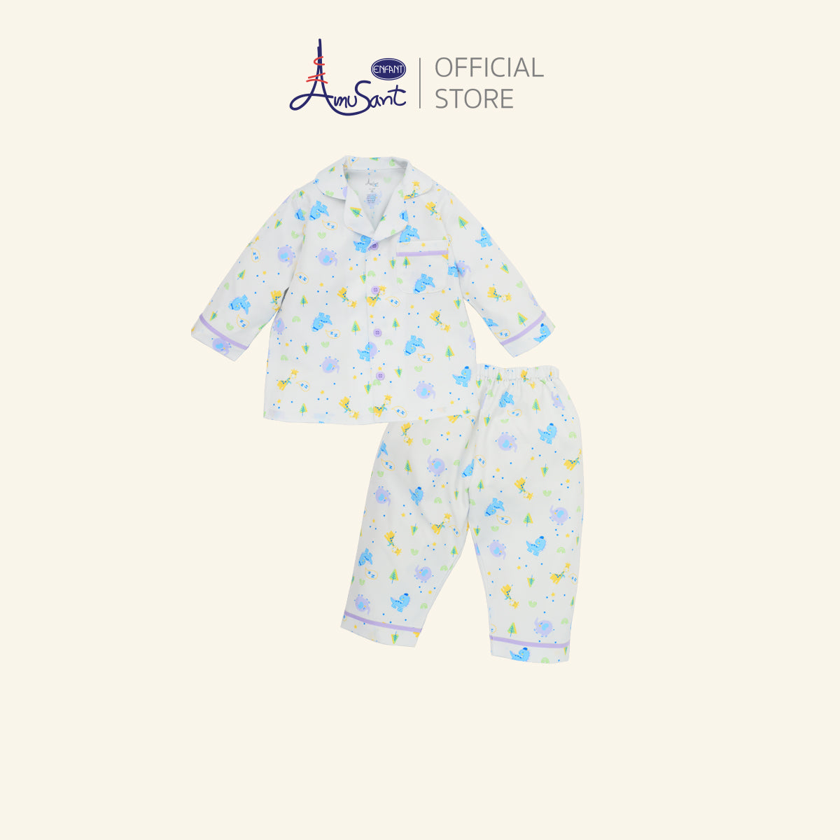 AMUSANT ชุดนอนเด็กแขนยาว ขายาว ลายช้าง สีครีม-ม่วงอ่อน EH1N52