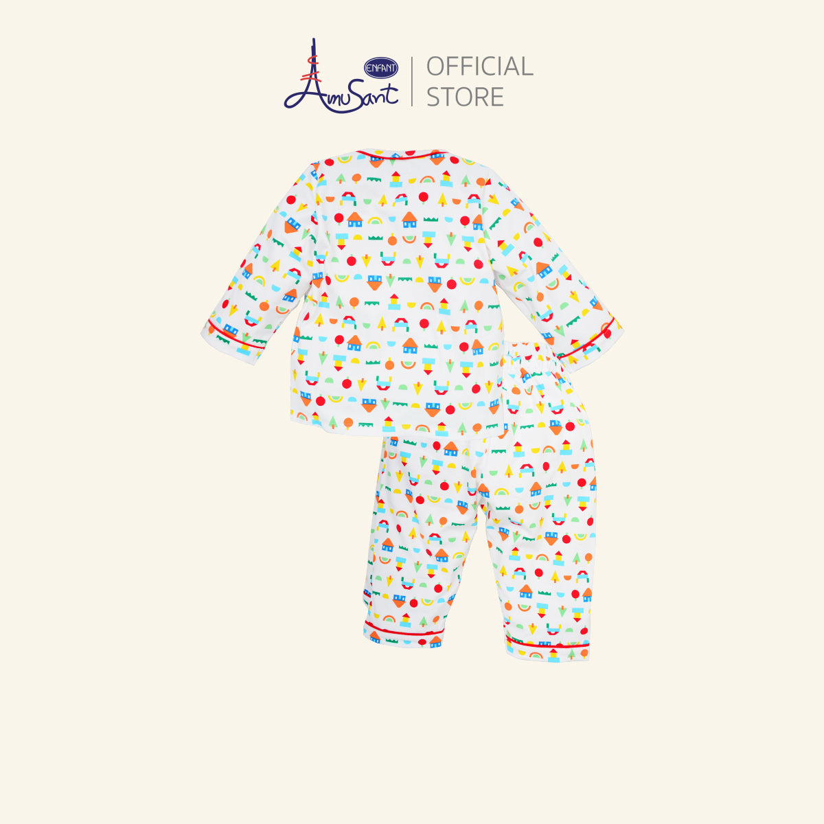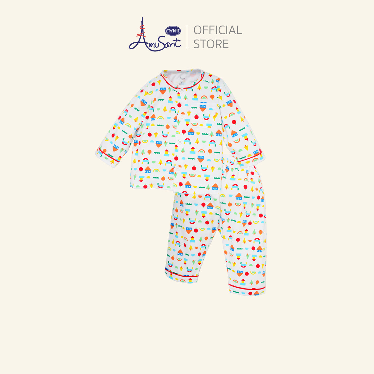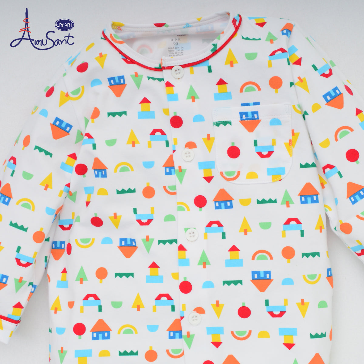 AMUSANT ชุดนอนเด็กโต ลายบล็อคไม้ตัวต่อ 1-8ขวบ