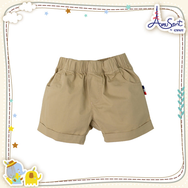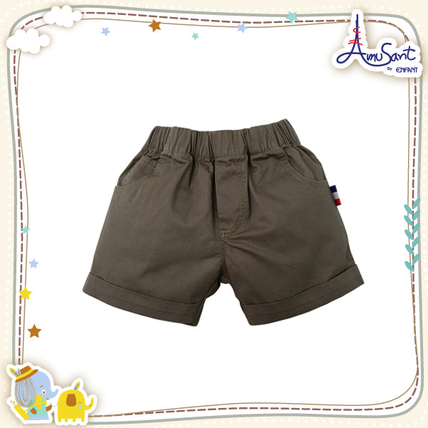 กางเกงขาสั้นเด็กผู้ชายเอวยางยืด ผ้า Cotton Twill มีกระเป๋า 2 ข้าง