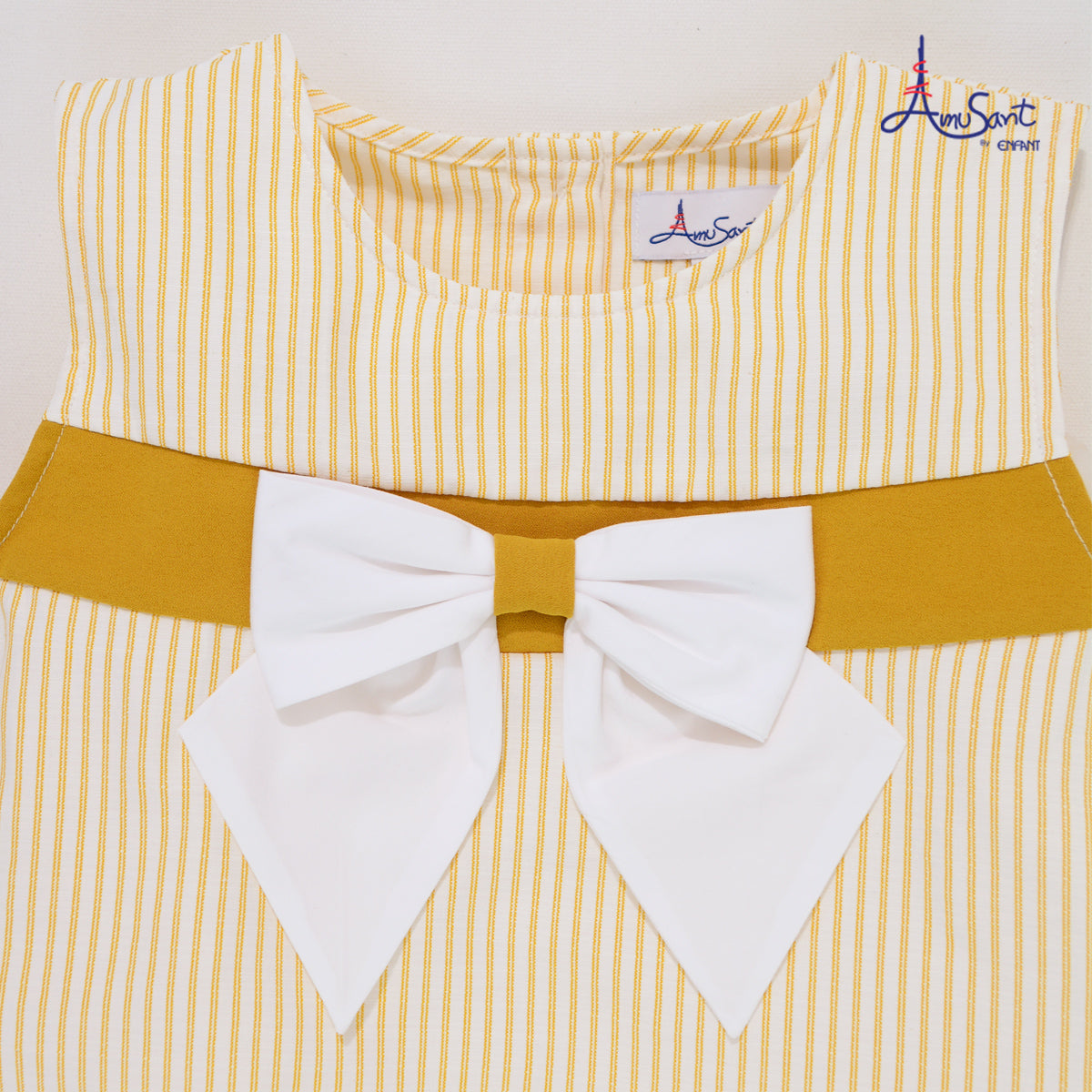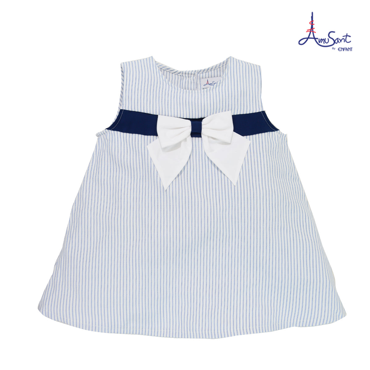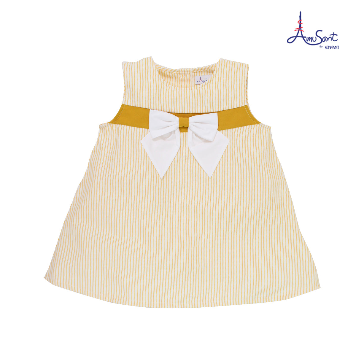 เสื้อแขนกุดตัวยาวเด็กโต 6-14 ขวบ ตัวเสื้อผ้าทอ Cotton 100% แต่งโบว์หน้า น่ารัก
