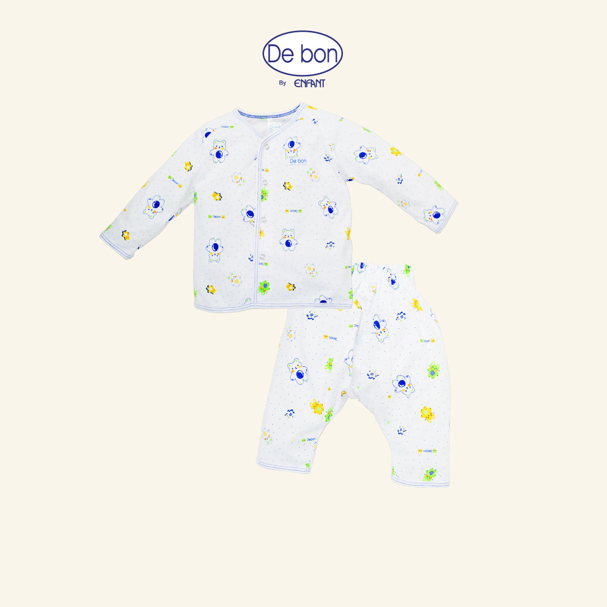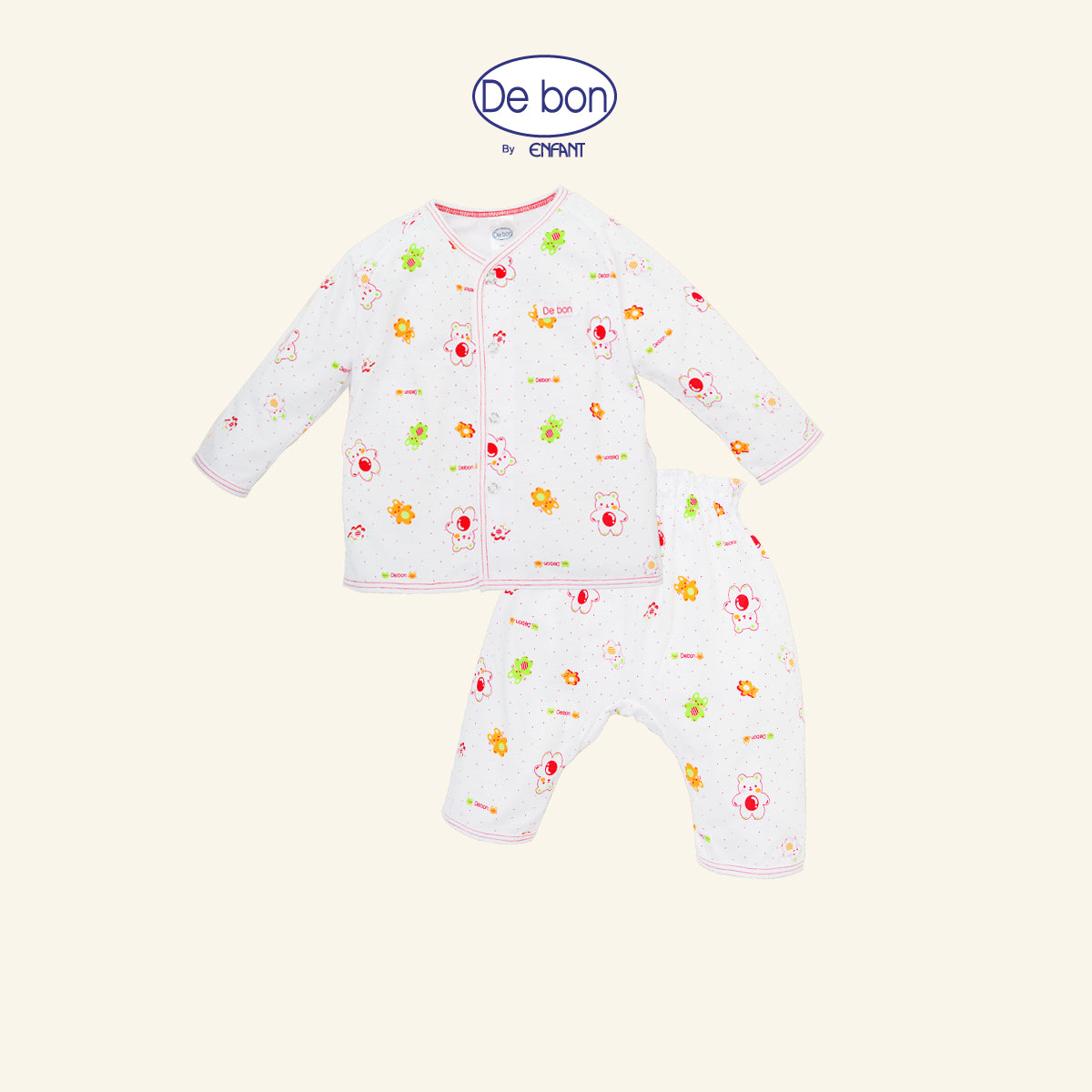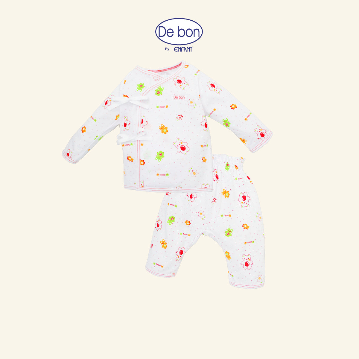De bon เสื้อผูกป้าย / เสื้อกระดุม /กางเกงขายาว เด็กเล็กลายหมีขาว (ขายแยกชิ้น)